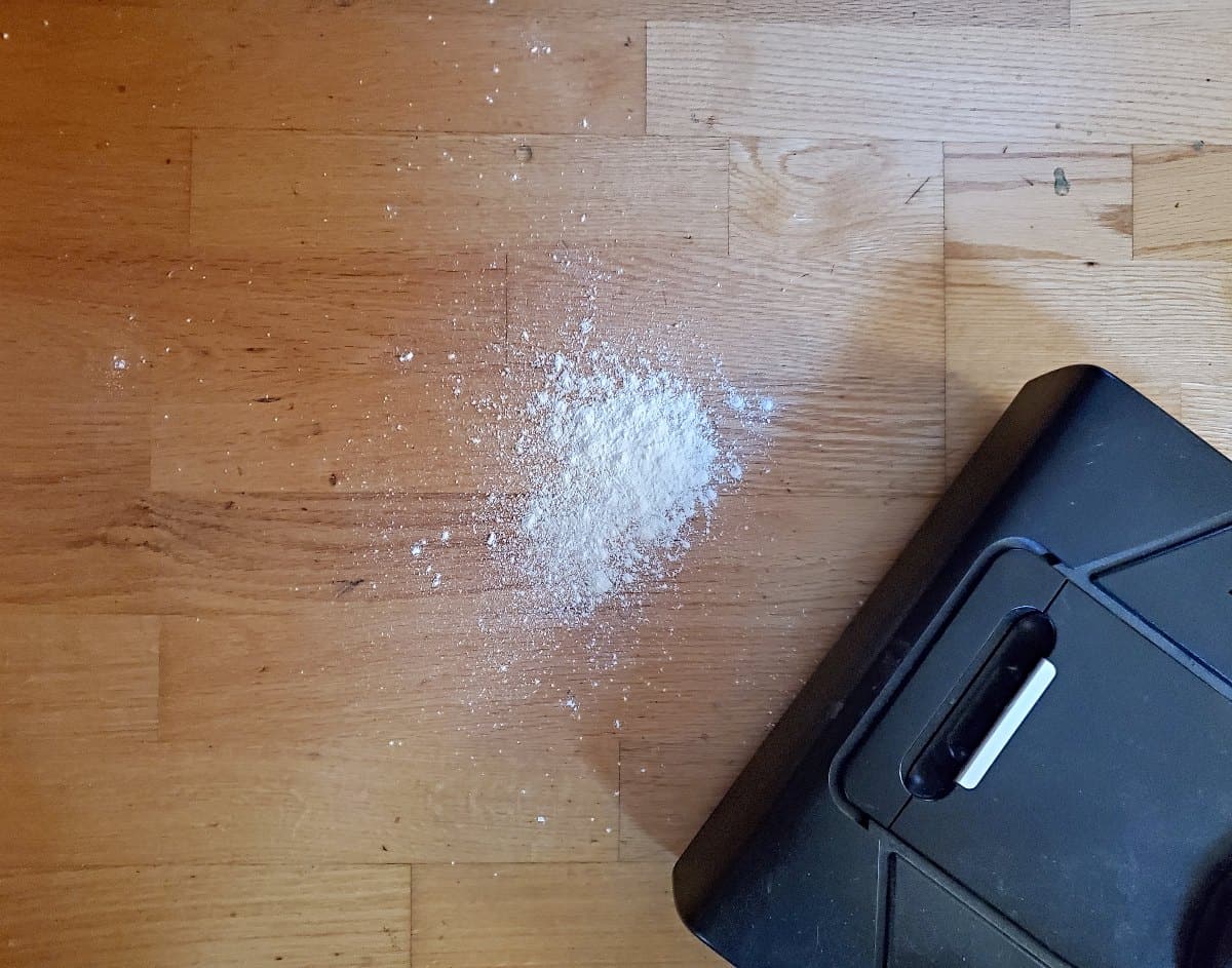 Neato Robotics vacuuming up flour as you figure out how to keep your house clean.