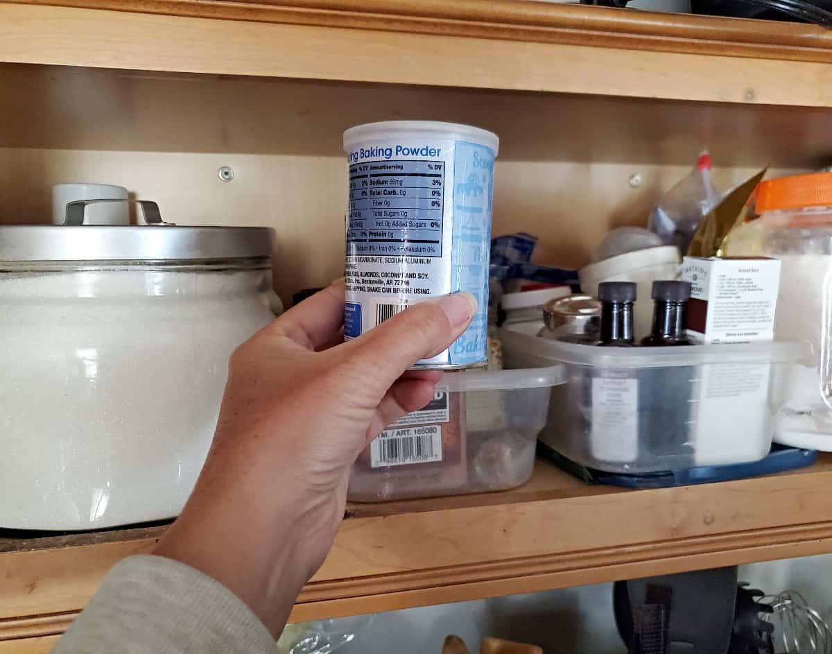 Instead, put things away as you use them. I always take out all my ingredients before I start cooking or baking so I don’t forget something, but I put each one away as I go.