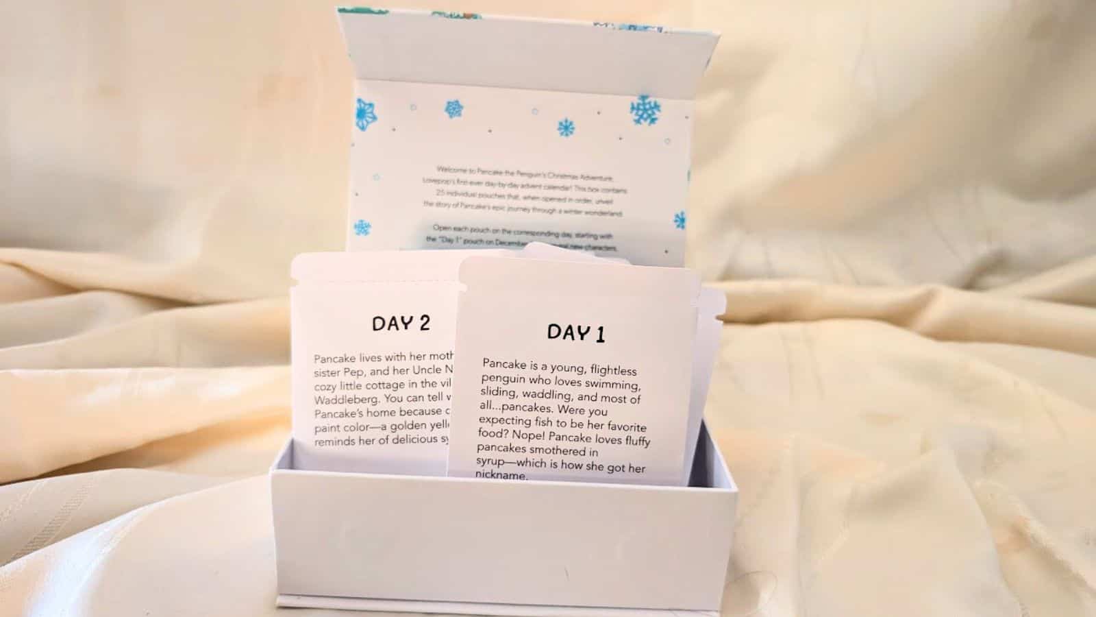 Each day, you open an envelope that tells part of Pancake’s adventure and also includes a popup cardstock figure (or two) that adds to the Christmas scene. LovePop makes a variety or Advent calendars in this style from Disney to Harry Potter to Santa’s Workshop to the Nativity and more, so you can find one to fit your personality.