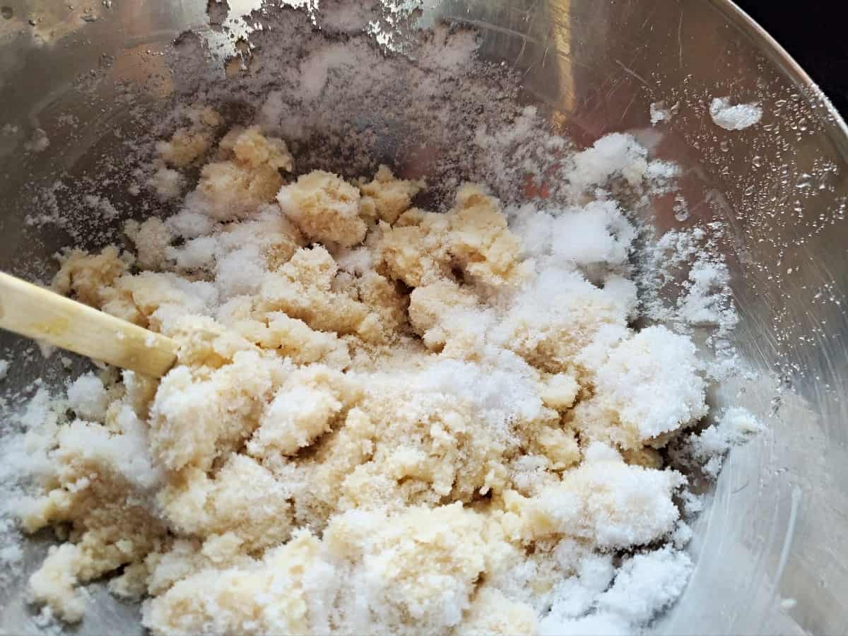 You can also place the mixing bowl inside a larger bowl lined with snow to insulate it and help your brown sugar snow cream stay cold for a bit longer.