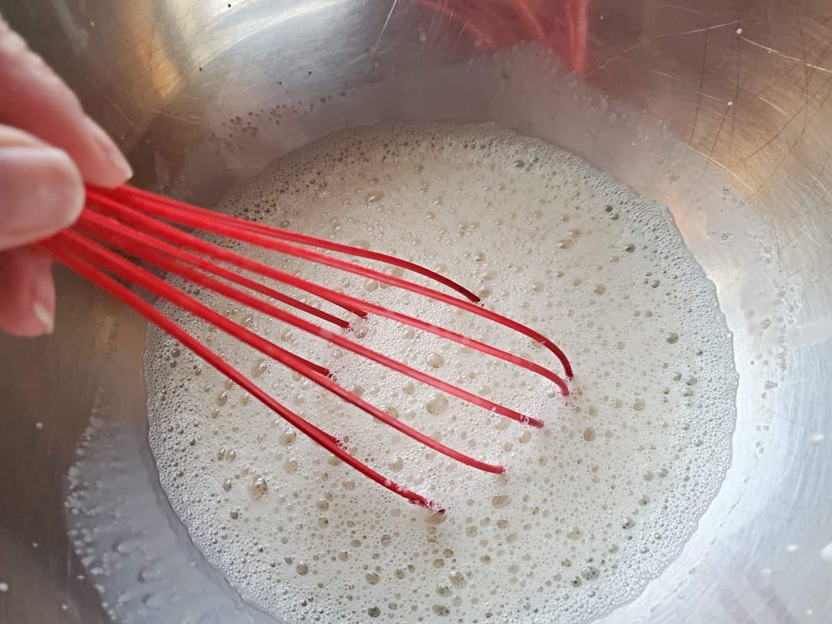 Your milk mixture will be frothy. Feel free to make this part in advance and set it in your fridge to chill.