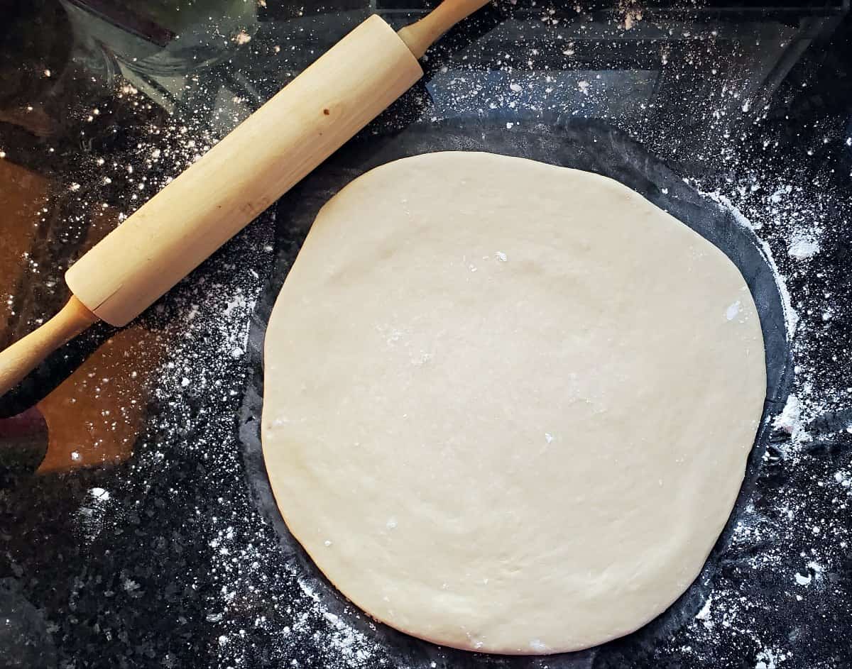 - Lightly flour a surface, and place the dough on it. Roll it into a 12 inch round.