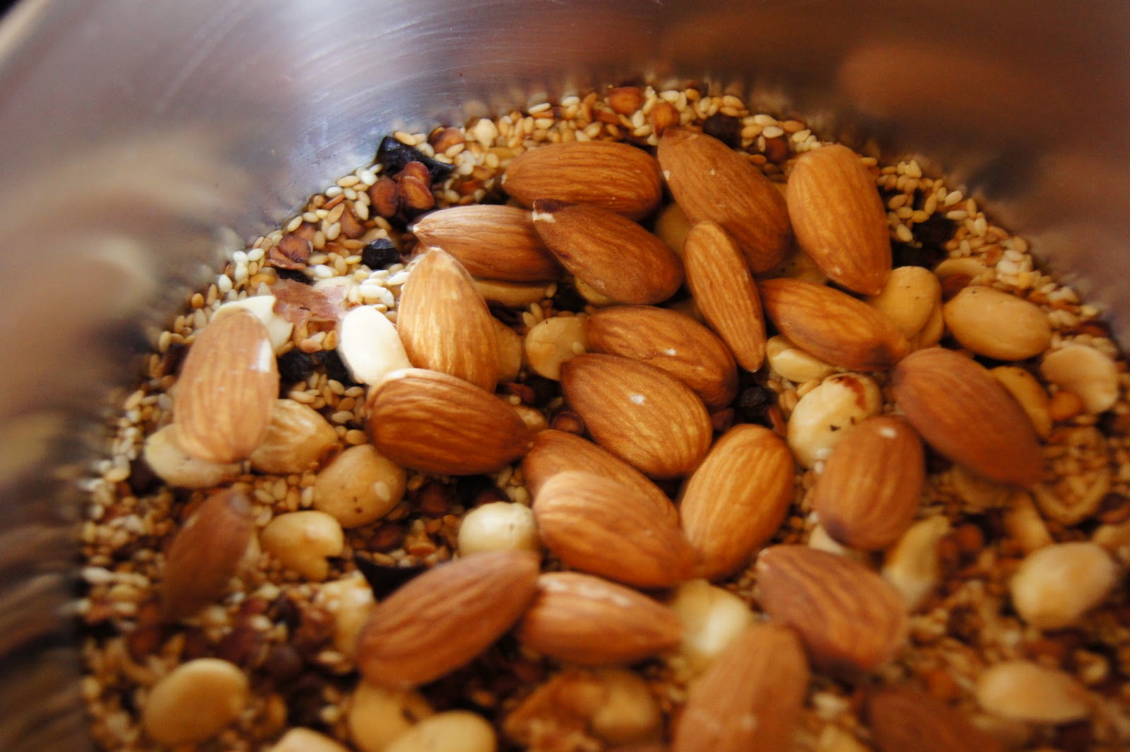 - Destem and deseed the anchos, but save these seeds! Place the ancho seeds into a small saucepan, along with the sesame seeds, the peanuts, the peppercorns, and the almonds. Toast over medium head for a minute or two, shaking to stir them up periodically. When you can smell them toasting, they're done. Set them aside.5 ancho chiles, 1 ounce sesame seeds, 1 ounce peanuts, 1 teaspoon peppercorns, 1 ounce almonds