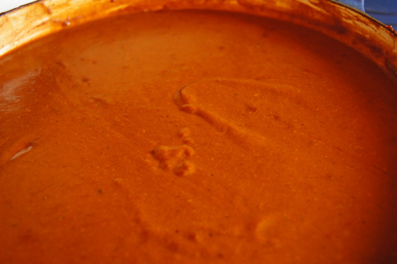 Let it cool, and remove the cinnamon stick (ummm oops, I forgot to do so this time. I have no idea what happened to it. Actually, I do. I blenderized it. And it tastes good, but I still suggest removing it!) Put it into a blender in batches. I would generally puree a sauce like this in the pan, but I truly want it pulverized and pureed as finely as possible, so I actually use my blender for this one.