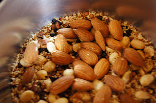 Place the ancho seeds into a small saucepan, along with the sesame seeds, the peanuts, the peppercorns, and the almonds. Toast over medium head for a minute or two, shaking to stir them up periodically. When you can smell them toasting, they’re done. Set them aside.