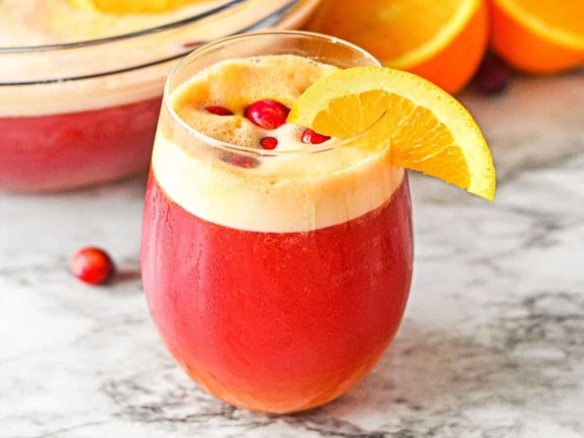 Need a drink everyone can enjoy, no matter what? This non-alcoholic Christmas punch combines cranberry juice, ginger ale, and orange sherbet for a colorful and festive option. Mix it up, and it’s sure to add sparkle and cheer to your next holiday gathering.