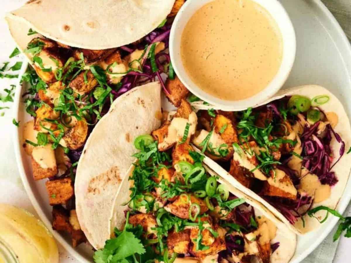 Image shows irresistible sweet potato tacos.