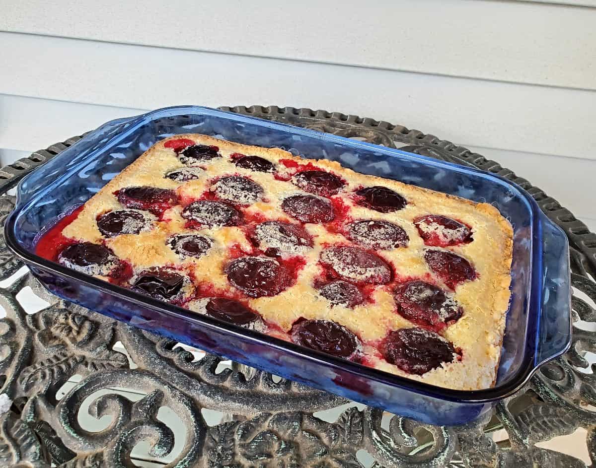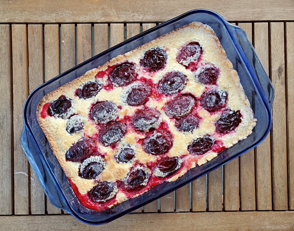 The tartness of the plums pairs perfectly with the sweetness of the creamy custard. This German plum cake is sweet and tangy without being overpoweringly rich.