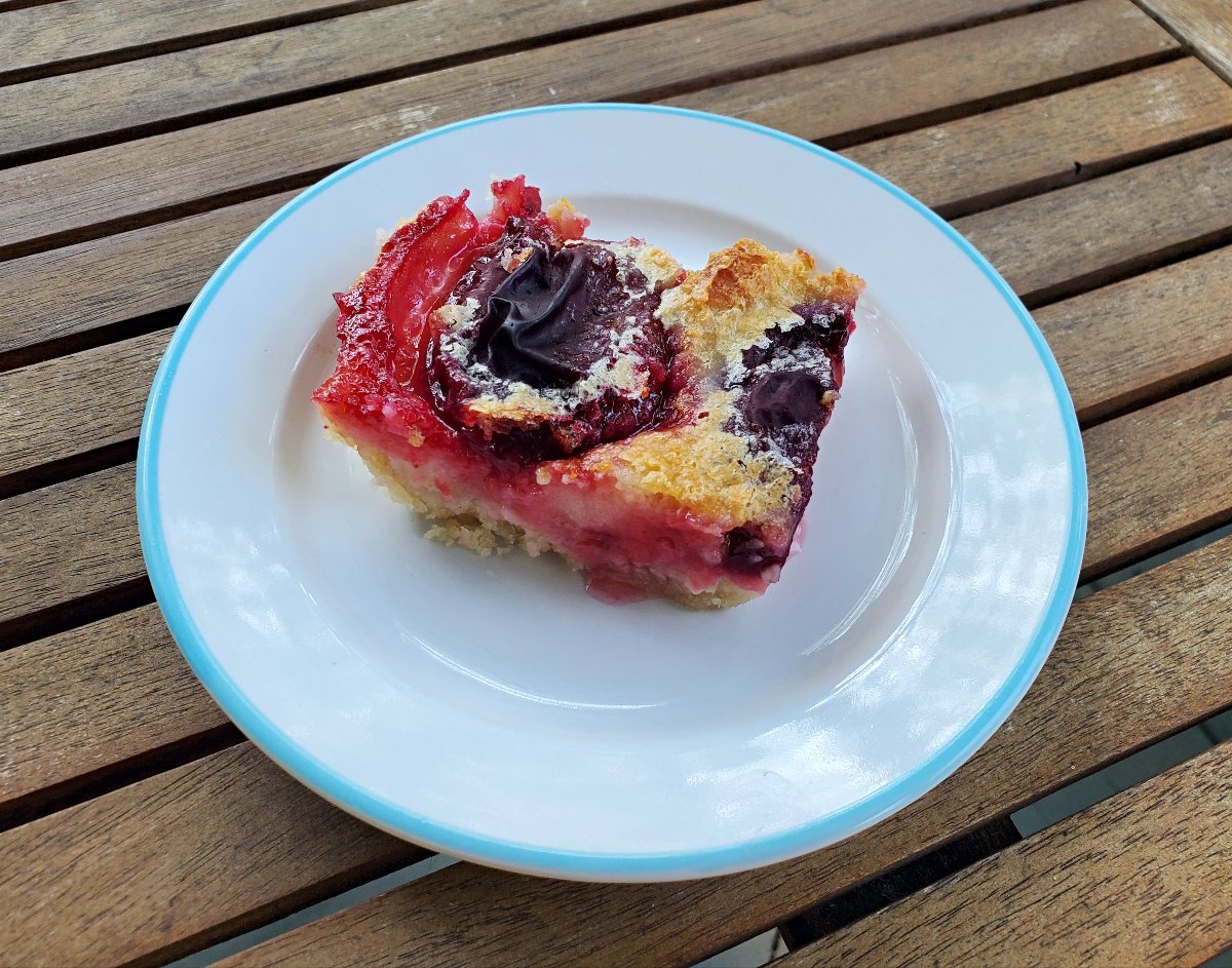Let your plum kuchen cool for 15 minutes to set, then enjoy!