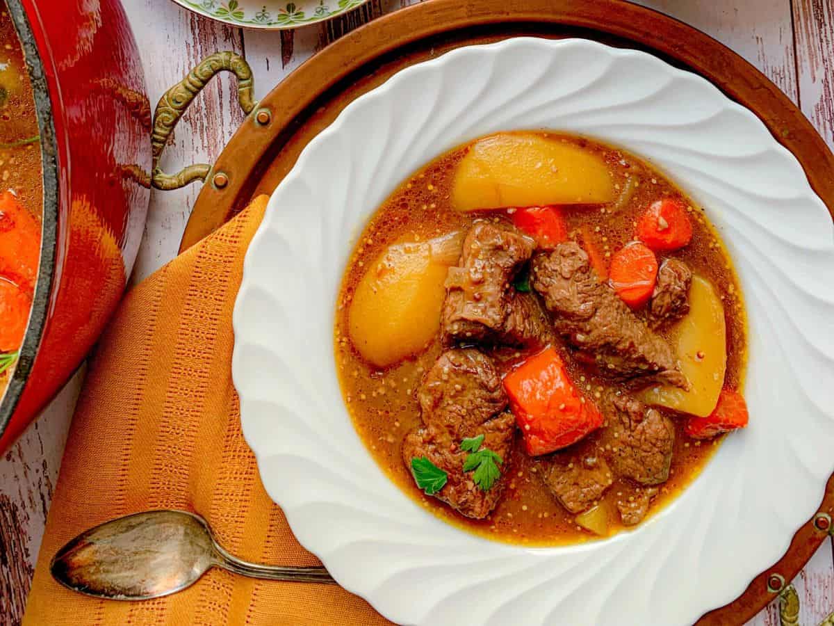 Dig into a rich and hearty stew made with tender beef, savory vegetables, and a bold, flavorful gravy. The slow-cooked ingredients create a meal that feels special and satisfying. It’s a classic dish that’s perfect for serving when you want something filling and comforting.