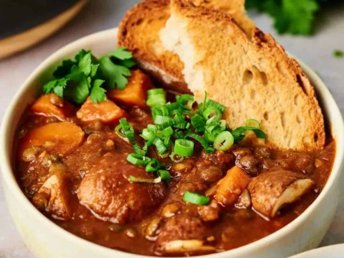 Turn a colorful mix of vegetables into a hearty stew that’s as filling as it is flavorful. Simmered in a rich broth, this plant-based dish delivers bold tastes and satisfying textures. It’s a wholesome meal that’s perfect for anyone craving something hearty and delicious.