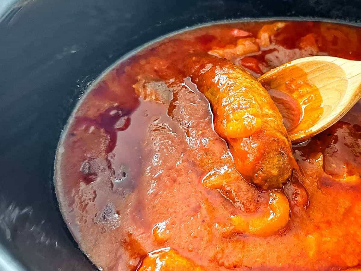 Sausages slowly cook with bell peppers until everything turns soft and full of flavor without any hands-on work. The juices from the meat and the peppers mix together in the pot, building a deep, savory taste that soaks into every bite. You don’t need to hover over the stove or check on anything. Just add the ingredients, put on the lid, and walk away. Come back to a meal that’s ready to spoon over pasta, rice, or stuff into sandwich rolls.