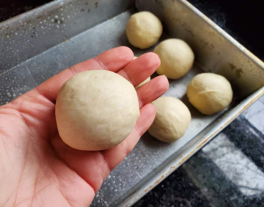 Weigh out your rolls – each one should be right about two ounces. If you don’t use a scale, divide your dough into 15 equal pieces.