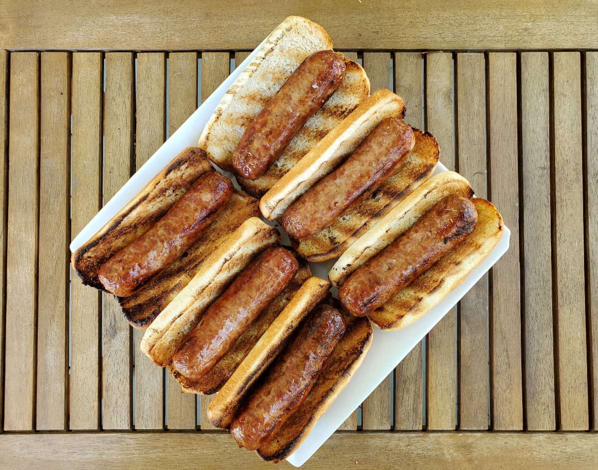 Use your grill tongs to carefully remove them. Add them to their buns and put the appropriate toppings on them, and you’re good to go.