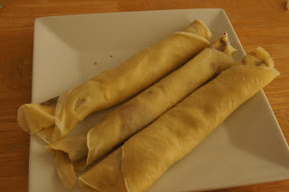 Whatever your filling, place it in the center of the crepe in a line from one end to the other. Carefully fold the crepe over the line, then roll it up.