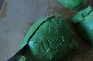 Step 3: Removing the flesh from the avocado is fairly easy at this point. You will change your tool now to a spoon. Simply slide the spoon between the flesh and the skin and gently work it all the way around the avocado. This is where a ripe avocado is important – an unripe one won’t separate easily (ok, plus, it doesn’t taste as good). Once you’ve gone all the way around, use the spoon to pop the flesh out and onto a cutting board.