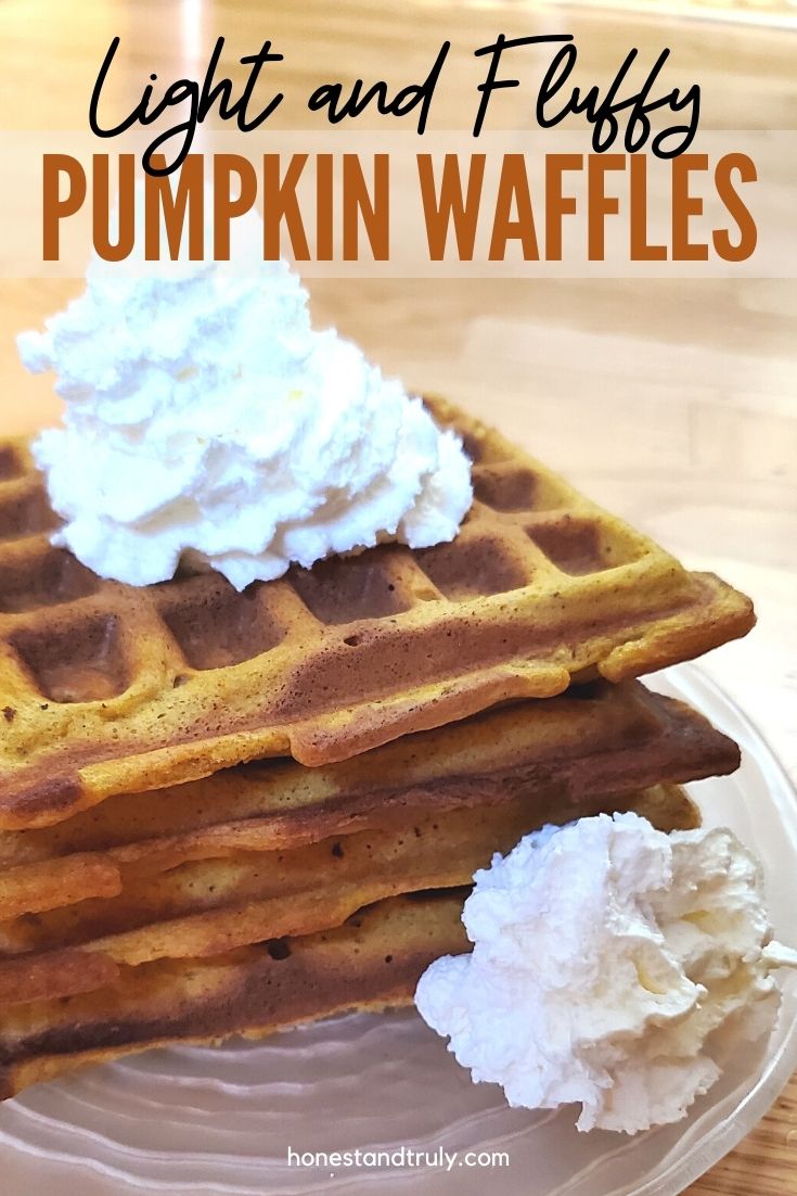 These pumpkin waffles are a cinch to make, and they make plenty to feed your family. It's a fun and delicious breakfast or brunch any time of year!