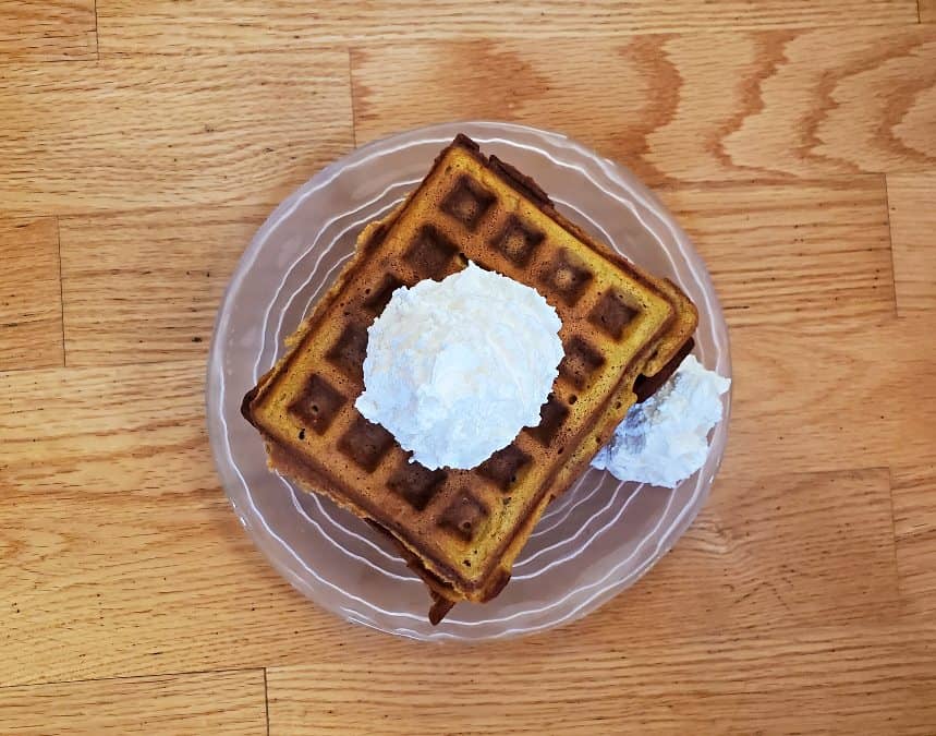 I first made these pumpkin waffles when my daughter’s elementary school had a pancake celebration and she couldn’t eat the pancakes due to allergies.