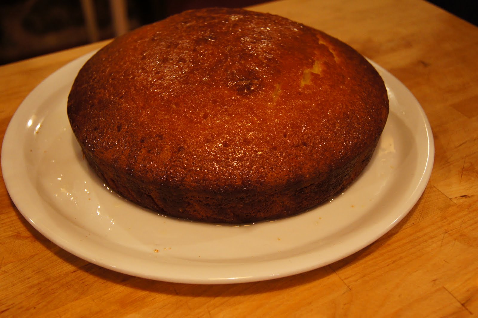 After cooling five minutes, remove the cake from the pan and set on platter. Poke holes all over cake and slowly dribble lemon juice mixture so that it seeps into the cake. Enjoy!